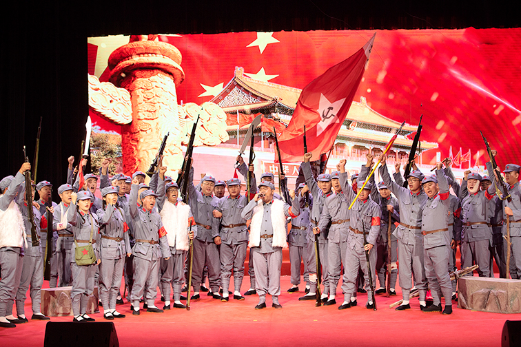 盛世華誕篇章中《東方紅》《追尋》《我和我的祖國》等歌曲的演繹充滿對祖國的深情與熱愛;星火燎原篇章中《工農(nóng)兵聯(lián)合起來》《人民軍隊心向黨》《映山紅》《蘇區(qū)干部好作風(fēng)》《過雪山草地》仿佛帶大家回到了當(dāng)年共產(chǎn)黨人野火燒不盡,春風(fēng)吹又生的革命年代;抗日烽火篇章中《河邊對口曲》《彈起我心愛的土琵琶》《地道戰(zhàn)》《保衛(wèi)黃河》還原軍民一心、誓死抗日的場景,觸動人心;戰(zhàn)地黃花篇章中《解放區(qū)的天》《南泥灣》《延安頌》《繡紅旗》《我的祖國》給大家?guī)砹朔榛鹣鯚熤械陌矊幣c希望;火紅年代篇章中《社會主義好》《學(xué)習(xí)雷鋒好榜樣》《我們走在大路上》《我為祖國獻石油》讓大家感受到了為建設(shè)祖國貢獻力量的自豪之情;改革春風(fēng)篇章中《春天的故事》《我的中國心》以及青春回響組合等節(jié)目充滿對祖國未來的信心與新時代中國人的活力;走向復(fù)興篇章中《不忘初心》《中國脊梁》《陽光路上》《走向復(fù)興》等歌曲斗志昂揚,將整個歌詠會推向高潮,全體沿海人為祖國更好的明天歡欣鼓舞,最后,歌詠會在全體演員《歌唱祖國》的歌聲中落下帷幕。
