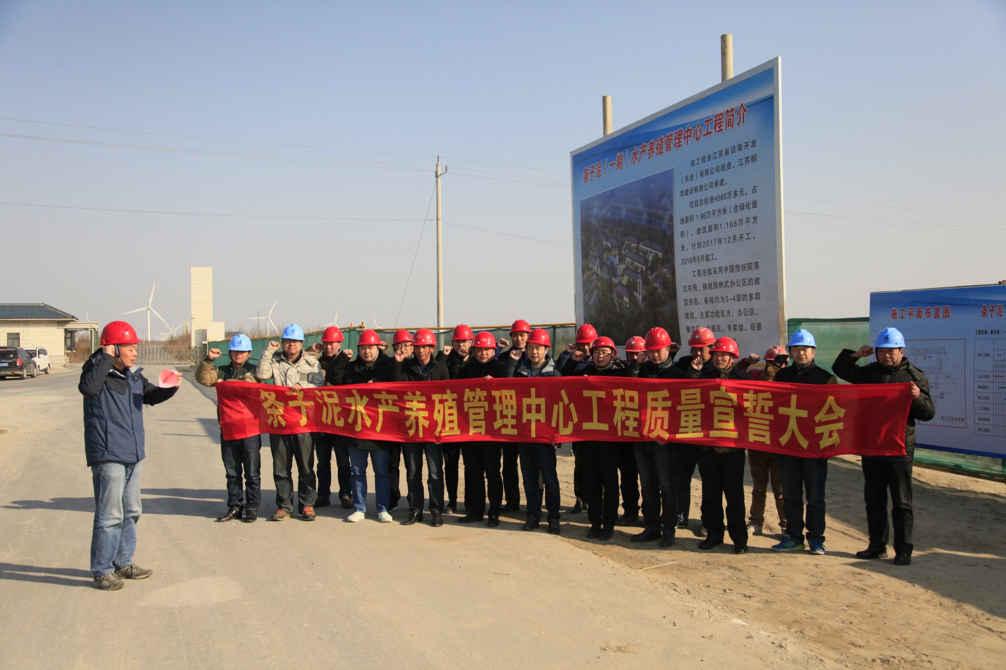 2018年2月7日,為進(jìn)一步強(qiáng)化質(zhì)量意識,鑄就精品工程,東臺公司組織開展條子泥水產(chǎn)養(yǎng)殖管理中心工程質(zhì)量宣誓活動。常務(wù)副總經(jīng)理王海祥帶領(lǐng)公司領(lǐng)導(dǎo)班子、項(xiàng)目管理人員和各參建單位現(xiàn)場負(fù)責(zé)人、施工班組長一起鄭重宣誓:在條子泥水產(chǎn)養(yǎng)殖管理中心項(xiàng)目建設(shè)中,牢記質(zhì)量標(biāo)準(zhǔn),明確質(zhì)量目標(biāo),規(guī)范質(zhì)量管理,嚴(yán)格質(zhì)量控制。杜絕不良材料進(jìn)入工程,保證工程不出次品,不留隱患,以實(shí)際行動確保工程質(zhì)量優(yōu)良。