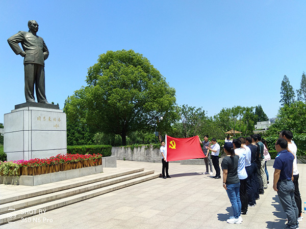 根據(jù)活動安排,兩個支部20多名黨員和入黨積極分子共赴淮安參觀周恩來紀念館及周恩來故居,緬懷周恩來總理作為老一輩無產(chǎn)階級革命家的豐功偉績。尤開軍副總經(jīng)理帶領(lǐng)全體黨員在總理高大銅像面前,面對鮮紅的黨旗,重溫入黨誓詞,解讀了革命精神,增強了責(zé)任感、使命感和榮譽感。