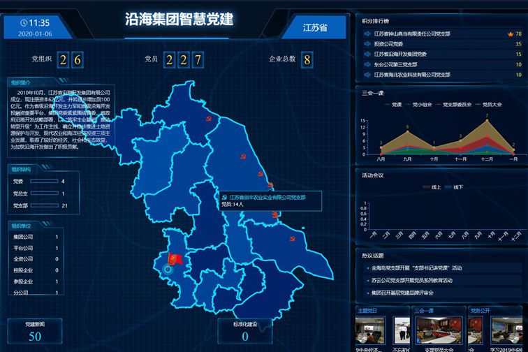 經過2個月的測試運行,集團公司智慧黨建管理系統(tǒng)日前正式上線運行。智慧黨建管理系統(tǒng)集黨建宣傳、黨員教育、黨務管理為一體,包括管理員后臺、大數(shù)據(jù)可視化界面、黨建微信公眾號三個相互關聯(lián)的平臺。黨員關注并綁定微信公眾號即可參加所在黨組織學習活動,實現(xiàn)了黨員前端使用與管理員后端管理關聯(lián)、黨務工作線上線下聯(lián)通。