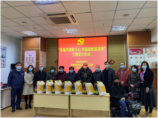 農(nóng)發(fā)公司本部黨支部首先向轄區(qū)內(nèi)獨(dú)居老人與殘疾人捐贈(zèng)慰問物資,隨后,與中奧社區(qū)黨委就共建事宜開展座談交流。最后,在中奧社區(qū)黨委書記陳開飛的陪同下,本部支部一行來到耄耋空巢老人袁浩春家中,為社區(qū)老黨員送去慰問。戴尚娣與戴瑞國詳細(xì)詢問了老人的身體狀況和家庭情況,并送上慰問物資與新春祝福,社區(qū)老人感動(dòng)不已。