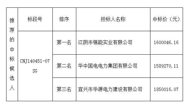 條子泥墾區(qū)(一期)條南片一至四區(qū)西片配套工程項目供電線路工程施工CNJ140451-07SG標段評標工作已經(jīng)結束,現(xiàn)將中標候選人公示如下: