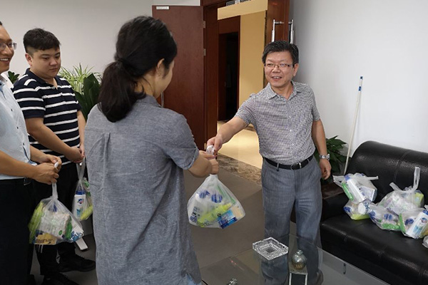 集團領(lǐng)導(dǎo)每到一個慰問點,都與在場員工一一握手,親手遞上防暑降溫用品,詳細了解了工作情況和高溫防護措施,叮囑大家在高溫期間要注意防暑降溫,合理調(diào)配工作時間。并與他們親切交談,感謝他們?yōu)榧瘓F轉(zhuǎn)型發(fā)展所付出的辛勤勞動,對連日高溫下大家堅守崗位、辛苦勞動的精神給予充分肯定。