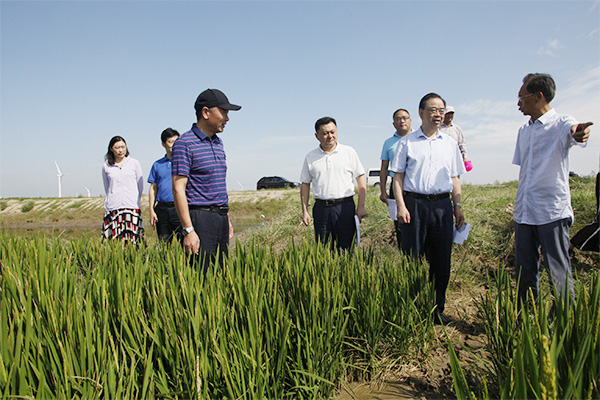 丁建奇一行實地察看了條北11、12區(qū)自主經(jīng)營項目、條北13~16區(qū)西側種養(yǎng)結合項目、生態(tài)公園一期工程項目以及水產(chǎn)養(yǎng)殖管理中心項目。在條北11、12區(qū)自主經(jīng)營項目現(xiàn)場,丁建奇總經(jīng)理詳細了解了鹽堿地改良以及農(nóng)業(yè)生產(chǎn)組織情況,要求東臺公司要抓好田間管理,提前做好稻田收割和銷售準備工作,確保項目區(qū)水稻長得好、收得好、賣得好,取得自主經(jīng)營項目首場勝利。要優(yōu)化生產(chǎn)組織方式和管理方式,繼續(xù)做好鹽堿地改良試驗,收集好生產(chǎn)數(shù)據(jù)信息和土壤監(jiān)測信息,不斷總結提高土壤快速改良技術。