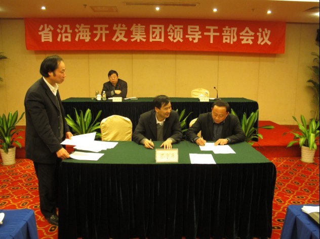 3月23日,省沿海開發(fā)集團在寧舉行2012年度目標(biāo)責(zé)任狀簽訂儀式,集團公司領(lǐng)導(dǎo)、省國資委駐集團監(jiān)事會朱愛春處長、本部各部門負責(zé)人、全資及控股企業(yè)主要負責(zé)人、參股企業(yè)我方派出負責(zé)人參加了儀式。集團公司副總經(jīng)理陳才俊、唐正東分別代表集團公司與各全資及控股一產(chǎn)企業(yè)和部分三產(chǎn)企業(yè)簽訂了2012年度經(jīng)濟目標(biāo)責(zé)任書。副總經(jīng)理丁建明和唐正東分別與各單位簽訂了黨風(fēng)廉政建設(shè)和安全生產(chǎn)責(zé)任狀。隨后,相關(guān)單位主要負責(zé)同志分別就本單位合并管理以及領(lǐng)導(dǎo)班子充實調(diào)整后的工作情況及近期工作安排作了交流發(fā)言。梁學(xué)忠董事長最后就班子建設(shè)和制度建設(shè)提出四點要求:一是要以民主集中制為核心,不斷加強各單位的制度建設(shè)。特別是涉及到三重一大的事情要進一步建立健全集體決策和分工負責(zé)制度,充分發(fā)揮每個班子成員的作用;二是要以單位主要領(lǐng)導(dǎo)為重點不斷加強廉政建設(shè)。主要領(lǐng)導(dǎo)要主動地、自覺地把自己的言行置于制度之內(nèi),置于監(jiān)督之中;三是要以解決問題為目標(biāo)提高班子的戰(zhàn)斗能力,不能回避矛盾,切實提高駕馭和解決問題的能力;四是要以思想作風(fēng)建設(shè)為重點,提高班子的凝聚力。不僅要自己消化問題,還要以人為本地做好職工的思想政治工作。