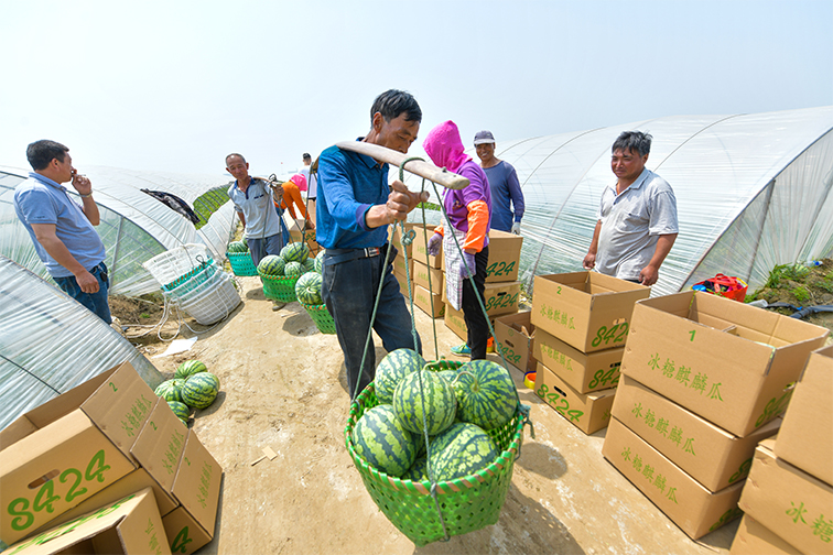 去年冬季至今,倉東公司已陸續(xù)完成瓜棚架設(shè)、品種育苗、藤蔓打理、覆膜除草和授粉疏果等一系列工序,頭茬8424、全美4K、浙蜜8號、浙蜜10號等質(zhì)優(yōu)品種西瓜已集中上市。