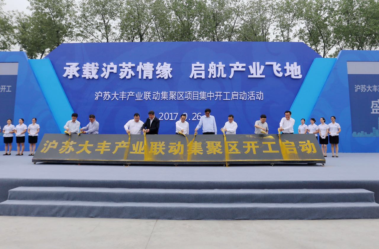 2014年,上海市政府與江蘇省政府出臺(tái)共同發(fā)展滬蘇大豐產(chǎn)業(yè)聯(lián)動(dòng)集聚區(qū)的意見。2015年11月,根據(jù)滬蘇兩地政府的工作部署,為統(tǒng)籌推進(jìn)集聚區(qū)的開發(fā)、建設(shè)和運(yùn)營(yíng),上海臨港集團(tuán)、光明集團(tuán)、江蘇省沿海開發(fā)集團(tuán)和鹽城地方政府共同組建了滬蘇大豐產(chǎn)業(yè)聯(lián)動(dòng)集聚區(qū)開發(fā)建設(shè)有限公司。