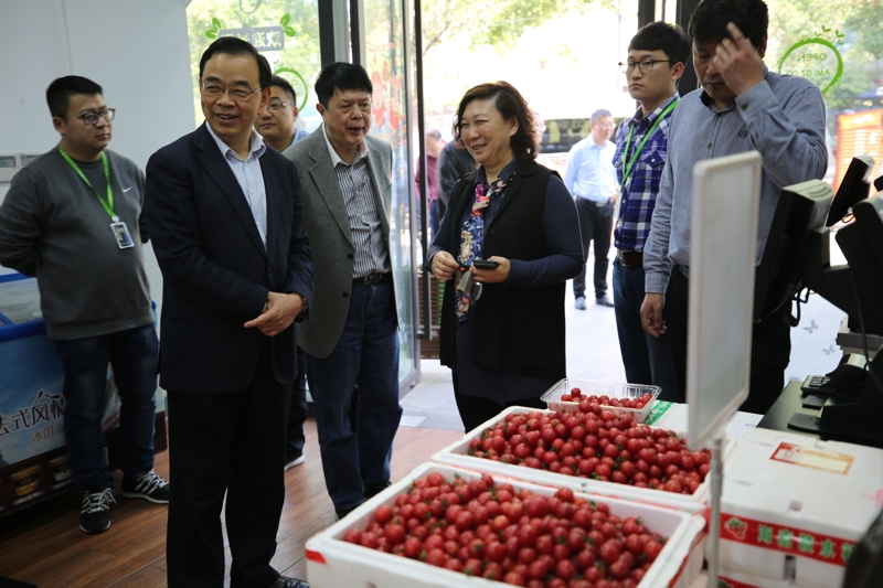 3月30日,考察組在杭州與明康匯生態(tài)農(nóng)業(yè)集團有限公司進行了交流,并實地考察了生鮮銷售網(wǎng)絡(luò)的運營情況。明康匯集團的特點是自建基地、自有檢測、自配物流、自營終端,構(gòu)建農(nóng)業(yè)全產(chǎn)業(yè)鏈。