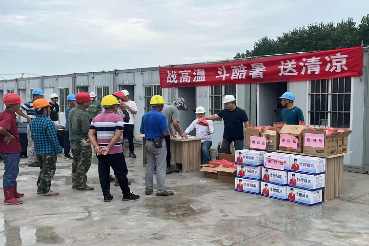 為做好高溫條件下項(xiàng)目建設(shè)人員的防暑降溫工作,切實(shí)辦好民生實(shí)事,保障一線施工人員的身體健康,8月16日下午,鶴豐公司黨支部聯(lián)合建管中心黨支部開展“戰(zhàn)高溫,斗酷暑,送清涼”慰問活動(dòng),為一線工人送去防暑用品和飲用水等,用實(shí)際行動(dòng)撐起解暑降溫的“遮陽(yáng)傘”,為奮戰(zhàn)在一線的職工送去了絲絲涼意和黨支部的誠(chéng)摯關(guān)懷。