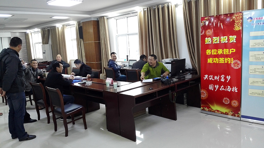 11月23日,海北公司2017年土地發(fā)包簽約工作全面展開,當天完成魚塘承包協(xié)議和意向承包協(xié)議42份,完成承包款和定金收繳640余萬元,給本輪土地發(fā)包工作起了一個非常好的開端。剩下的任務依然艱巨,相信在海北公司全體干部員工的共同努力下,一定能團結(jié)一心、艱苦奮斗,圓滿完成集團公司布置的土地發(fā)包任務。