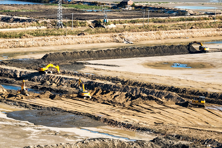 深秋時(shí)節(jié),天高氣清。集團(tuán)位于鹽城東臺(tái)的倉(cāng)東土地整治項(xiàng)目(一期)建設(shè)工地上,挖掘機(jī)、推土車(chē)、工程車(chē)進(jìn)進(jìn)出出,一片緊張忙碌、熱火朝天的景象。從一張規(guī)劃圖紙到機(jī)器轟隆,這里正實(shí)現(xiàn)著從鹽堿地向高標(biāo)準(zhǔn)農(nóng)田邁進(jìn)的蛻變。倉(cāng)東土地整治項(xiàng)目是集團(tuán)“十四五”規(guī)劃確定的土地主業(yè)重大項(xiàng)目,是土地公司響應(yīng)中央、省委、集團(tuán)號(hào)召,踐行主業(yè)擔(dān)當(dāng),培育主業(yè)業(yè)務(wù)鏈核心能力的關(guān)鍵抓手。